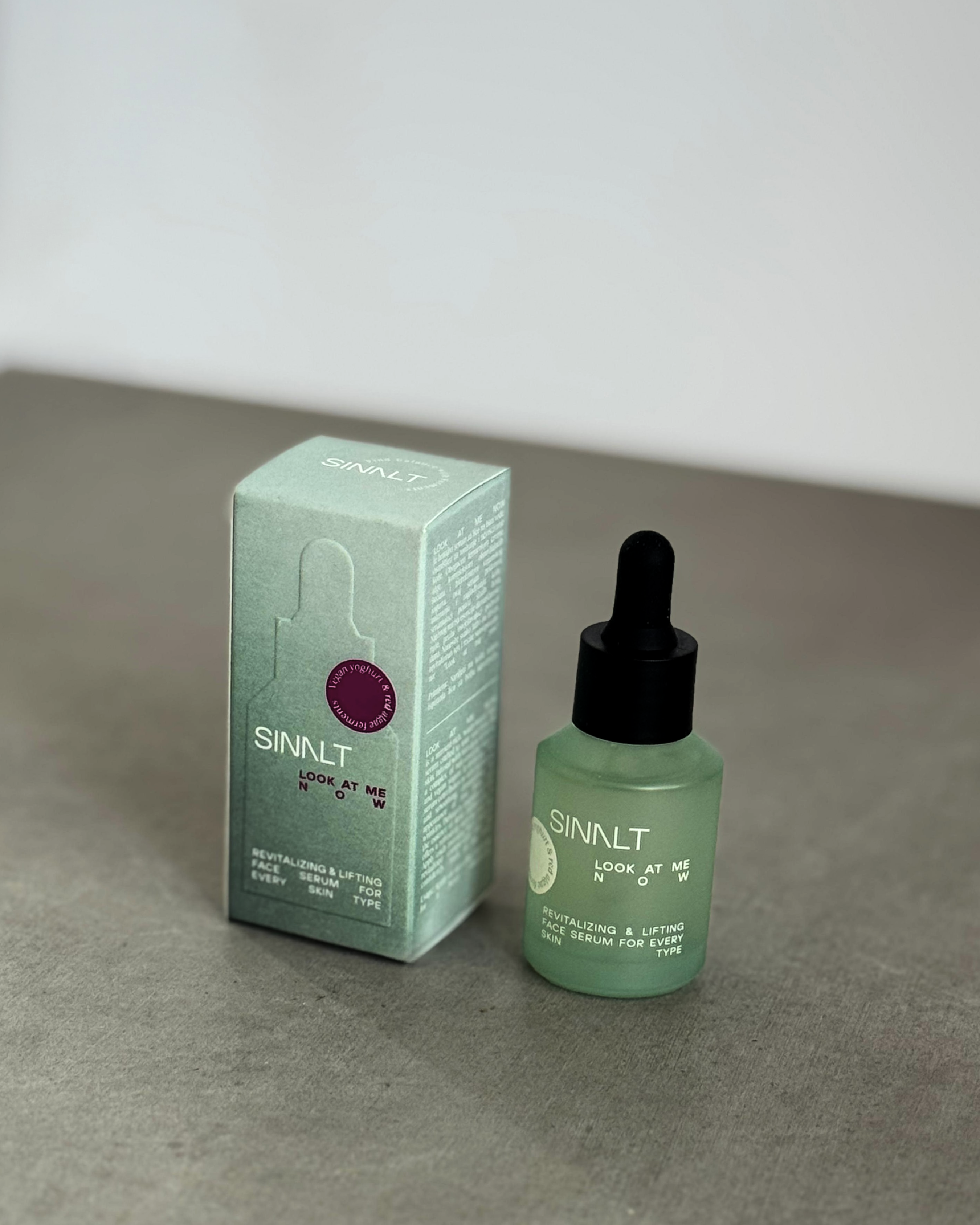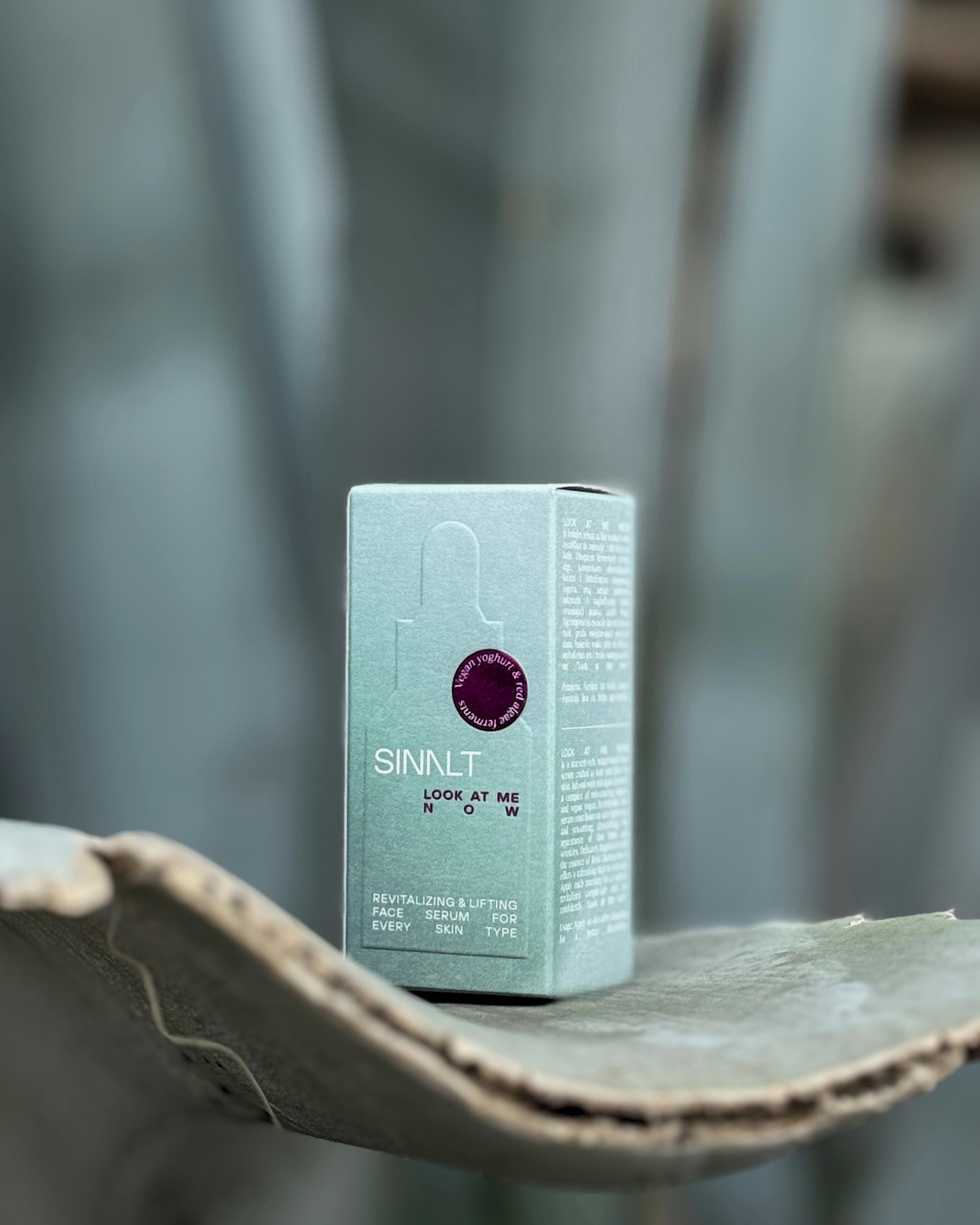 Look At Me Now je hranjivi serum na bazi vode, osmišljen za toniranje i učvršćivanje kože. Obogaćen fermentom crvene alge, kompleksom obnavljajućih šećera i hidrolizatom veganskog jogurta, ovaj serum vidljivo zateže i zaglađuje kožu, smanjujući pojavu sitnih bora. Nježnog mirisa esencije Ruže Damaske, pruža osvježavajući početak dana. Nanesite svako jutro za blistav, revitaliziran ten i recite samopouzdano: “Look at me now!”